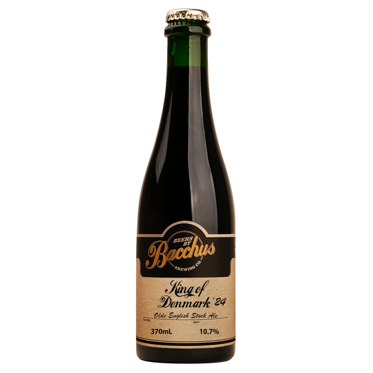 King Of Denmark ~ 2024 (Alc 10.7%) 370mL Bottle. This Olde English Stock Ale was brewed with a 200+ year old yeast strain from the Harvey's brewery in Sussex, England. The beer was aged for 12 months in oak barrels. Stock Ales were traditionally blended with younger, smaller beers to add complexity, but were also served straight like ours. The beer displays the subtle brett & lovely souring character from this ancient yeast strain.