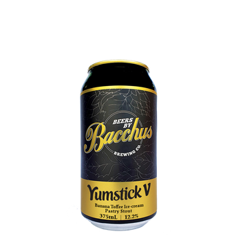 Yumstick V (Alc 12.2%). 375mL can. The 5th in our decadent Drumstick ice-cream inspired stout series presenting flavours of rich vanilla ice cream, banana, sweet toffee & caramel, milk chocolate & wafer cone delicately topped with blondie pieces & crushed peanuts. (CAUTION contains Peanuts.) This is truly another epic dessert in a glass! – ENJOY…